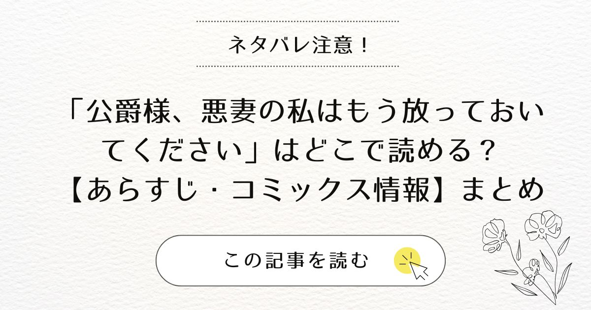 今回は『公爵様、悪妻の私はもう放っておいてください』のあらすじと漫画が読めるサイトをご紹介させていただきました。