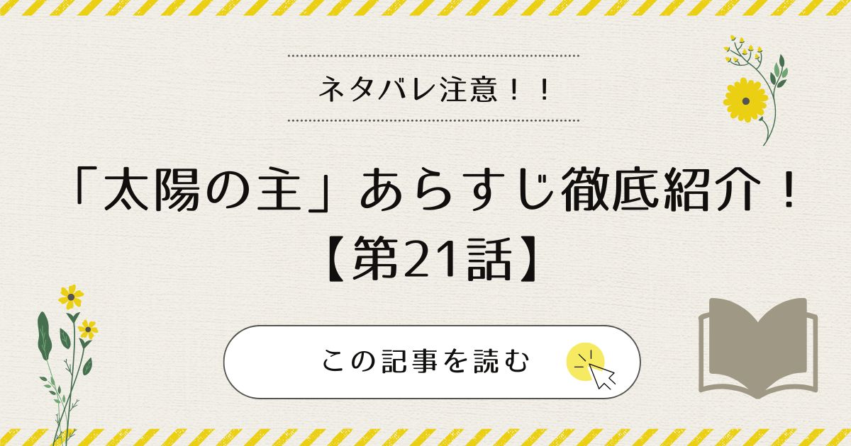 人気漫画『太陽の主』21話のあらすじをご紹介しました。