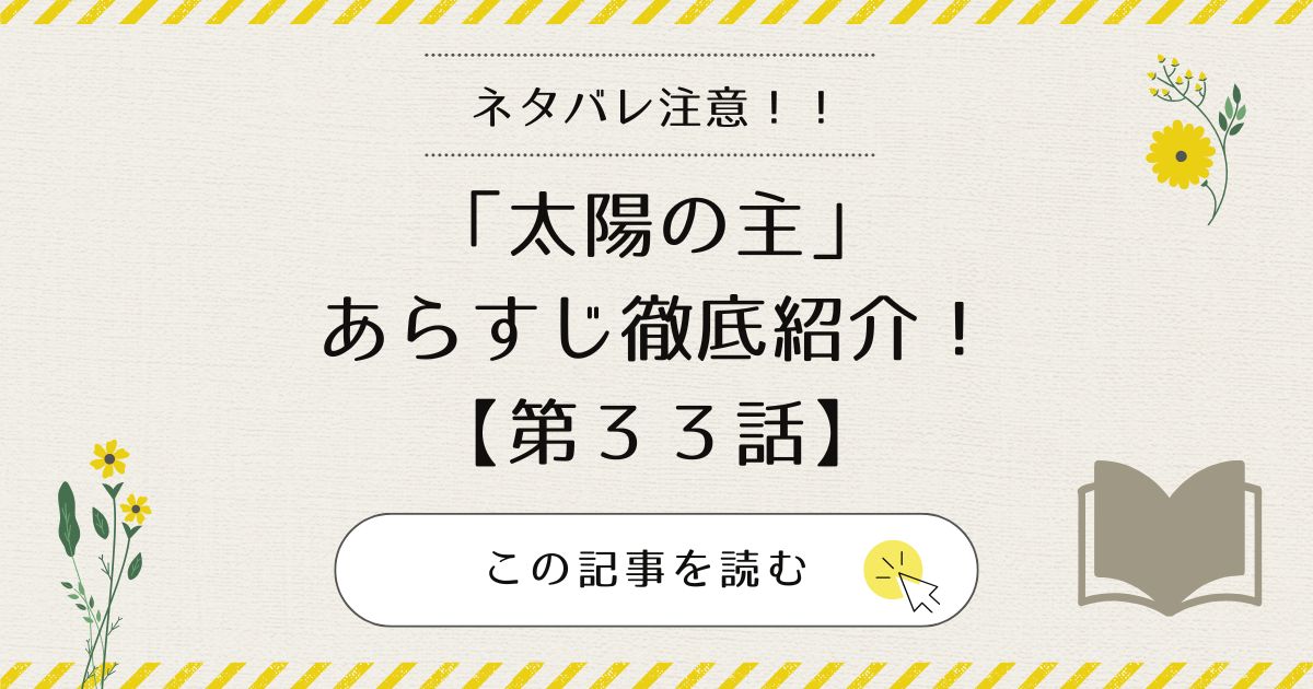 人気漫画『太陽の主』33話のあらすじをご紹介しました。