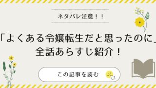 あらすじ・ネタバレ 『よくある令嬢転生だと思ったのに』あらすじ紹介【第1話〜最終話】全話ネタバレ 『よくある令嬢転生だと思ったのに』全話のあらすじを紹介しています。キリアンはエディットが転生者であることを受け入れ、彼女への信頼・そして愛情が深まることになります。キリアンもまた謎の声に操られていたのかもしれないこと・リナンに協力してもらい… 2025.09.15 あらすじ・ネタバレ